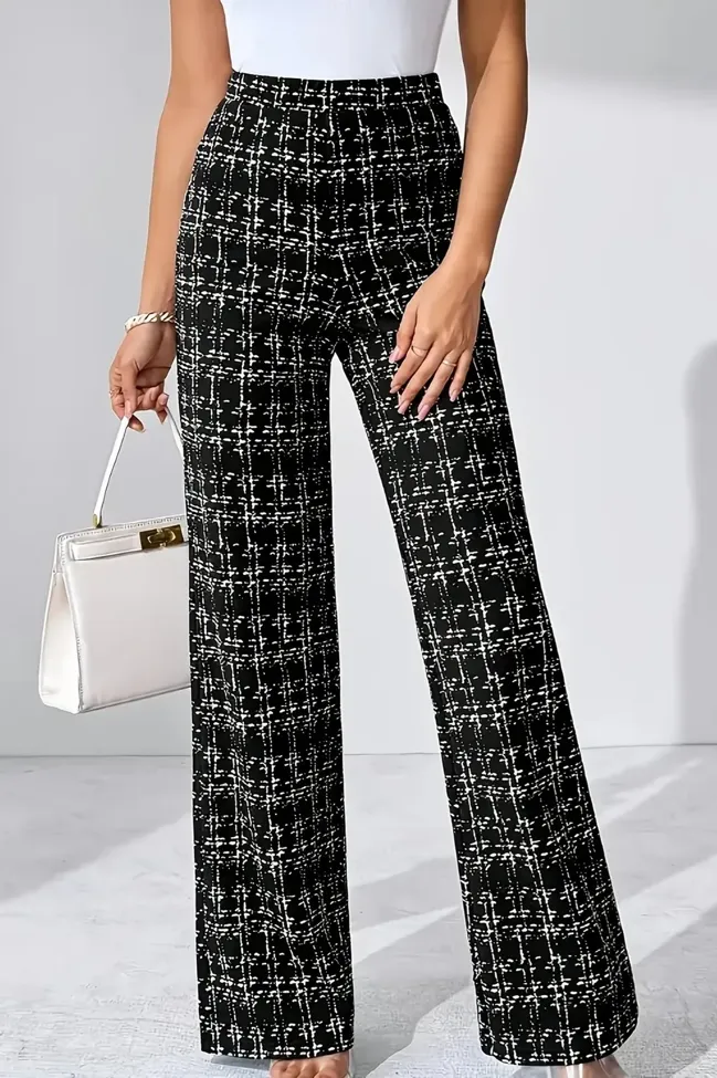 Black High Rise Abstract Check Trousers