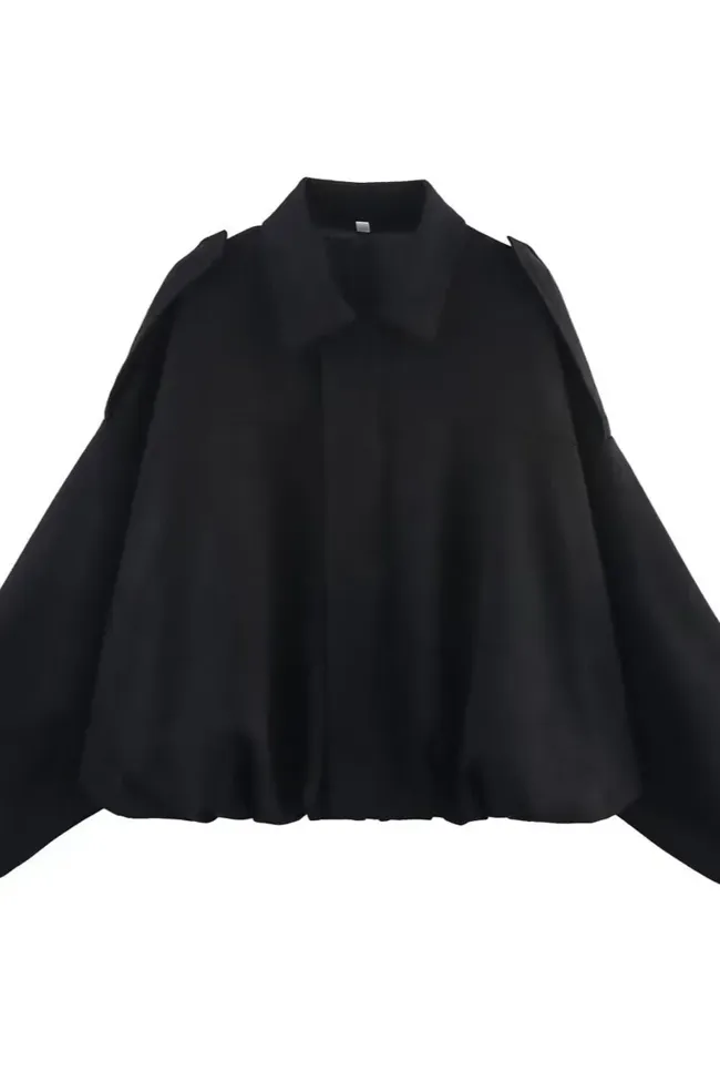 Black Solid Oversized Cargo Jacket