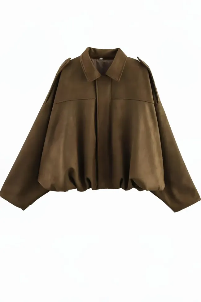 Brown Solid Oversized Cargo Jacket