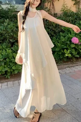 Cream Choker Neck Layered Co-Ord Set