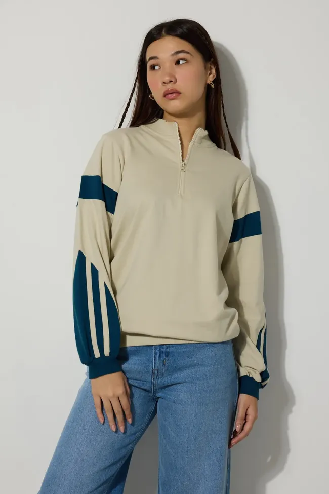 Cream Oversized Sleeve Detailed Sweatshirt