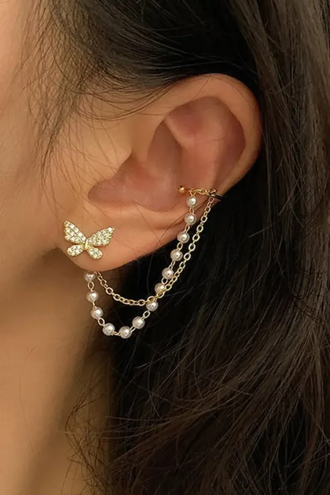 Golden Pearl Layered Stud Earrings