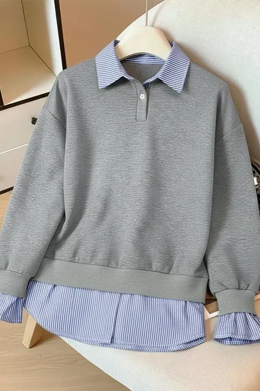 Grey Layered Polo Neck Sweatshirt