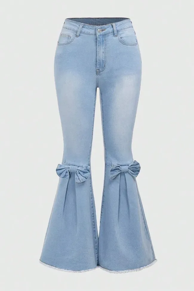 Light Blue High Rise Bow Bootcut Jeans