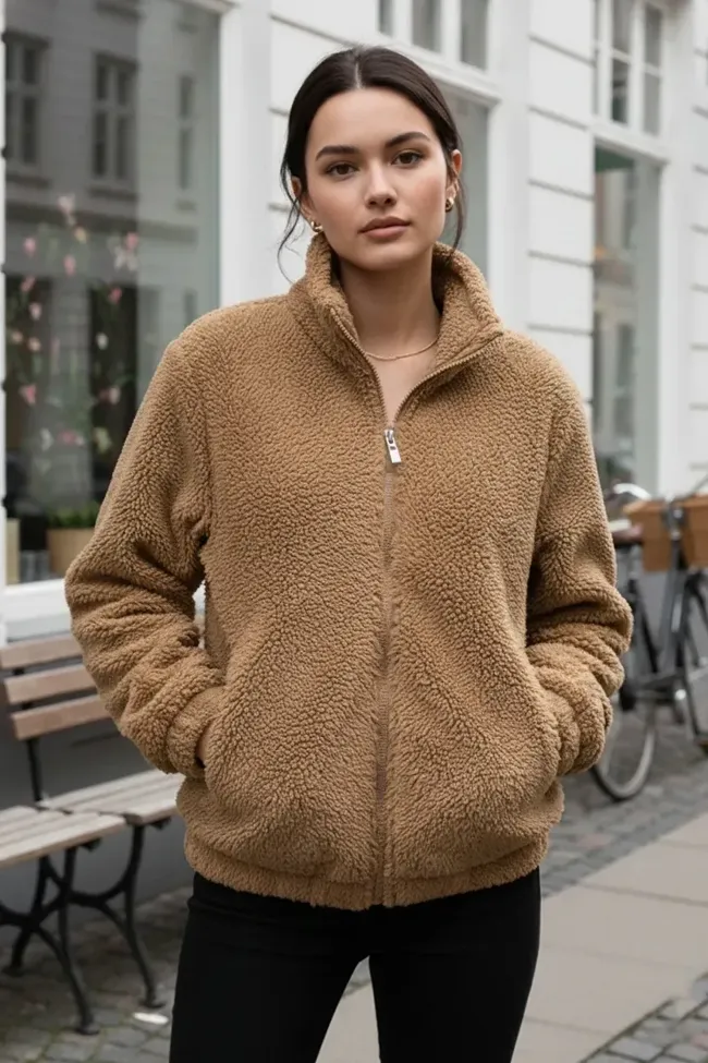 Light Brown Solid Lapel Collar Jacket